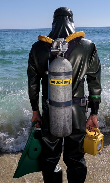 1920-1930 Dräger i Tyskland udviklede en Nitrox lufttilførsel fra en rygsæk lignende beholder til en dykkerdragt.